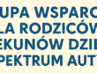 Bezpłatna grupa wsparcia dla rodziców i opiekunów dzieci będących w spektrum autyzmu rozpoczęła swoje działanie! Jeżeli zwolnią się miejsca lub pojawi się możliwość poszerzenia grupy będziemy na pewno dawać znać.